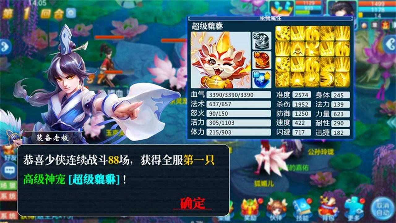 游戏采用了最纯正的经典回合制战斗玩法,加入了炫目的技能特效和多样的伙伴组合,充分地发挥出回合制丰富的策略性特点,阵法的重要性在游戏中得到了完美的实现;