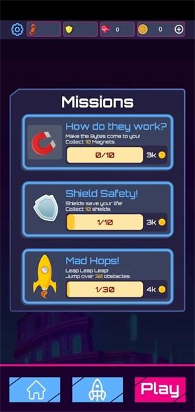 在这个无尽奔跑者中,冲刺、滑行、跳跃和飞翔,穿越数字朋克世界。与基里吉、机器人及其障碍物周旋-或使用合适的加能粉碎它们。收集筹码和金币以走得更远。