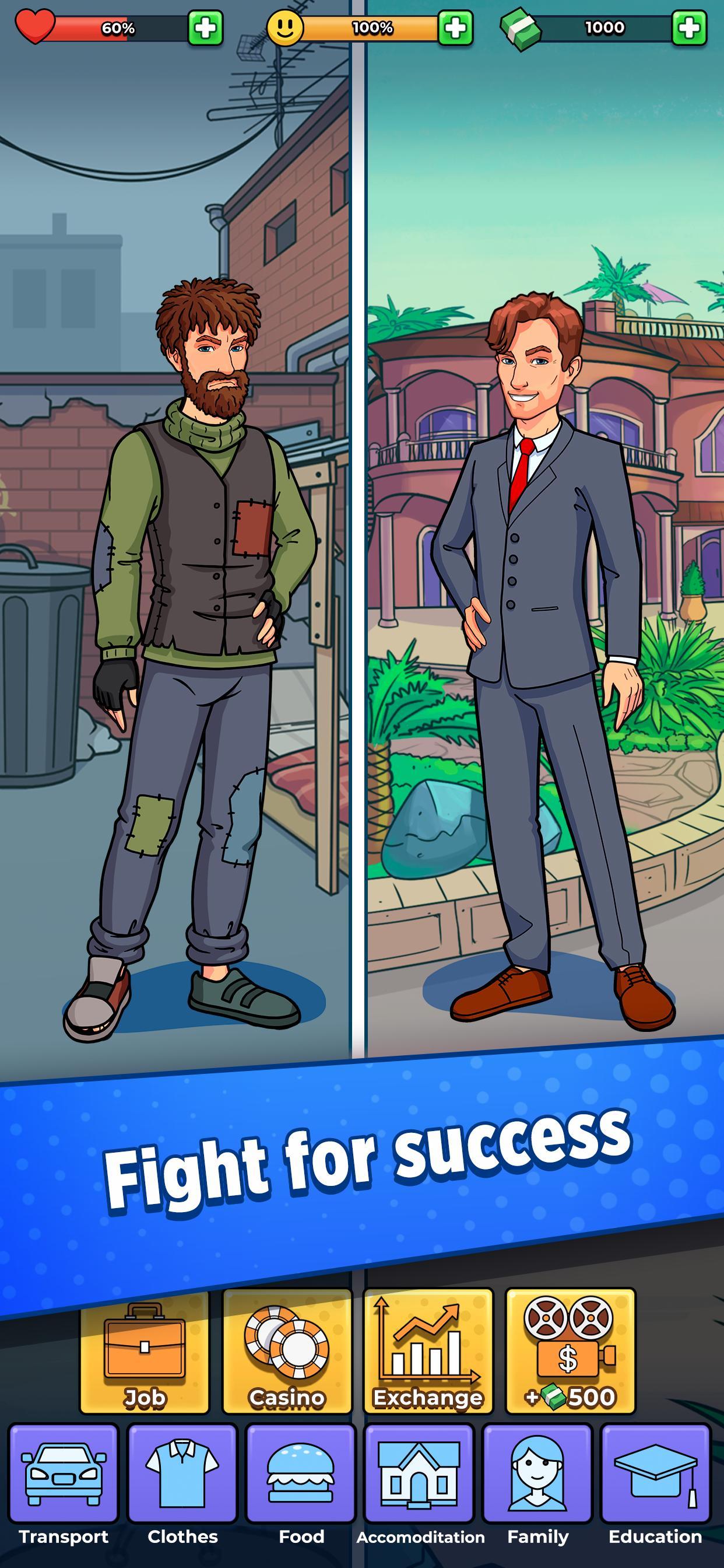 流浪汉生活商业模拟器是一款玩法十分有趣的休闲小游戏,游戏的设定很是新鲜有趣,游戏过程中,玩家将会体验到从一名流浪汉满满成为一名商业大亨的体验。游戏的玩法也很简单,玩家只需要不断依据自己的判断做出各种选择,就能帮助流浪汉一步步发家致富,逐步成为一名商业大亨。简单好上手的游戏操作让玩家可以迅速上手游戏,赶紧来试试吧