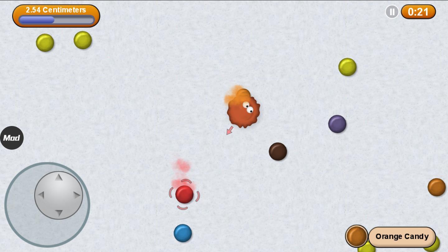 非常简洁的游戏画风,指尖滑动,即可控制小球进行移动,进行比他小的东西的吞噬,以吞噬的方式不断进行长大,从而吞噬更多的东西。