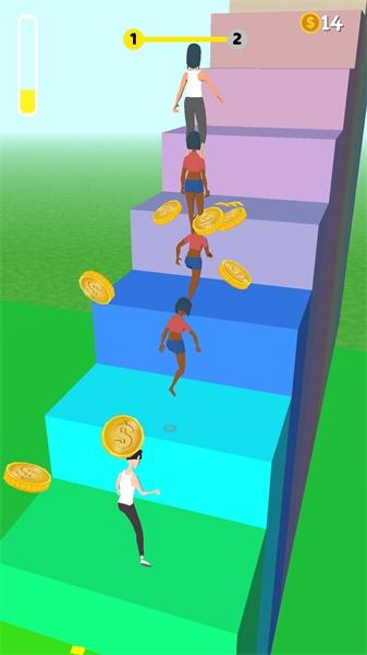 游戏玩法相当简单,其内核实际上就是一款老套的跑酷游戏。只不过在这款游戏中玩家需要在不断前进的过程中通过叠叠高的方式,踩在别人身上增加自己的高度,以便在遇到障碍物之后可以顺利通过。