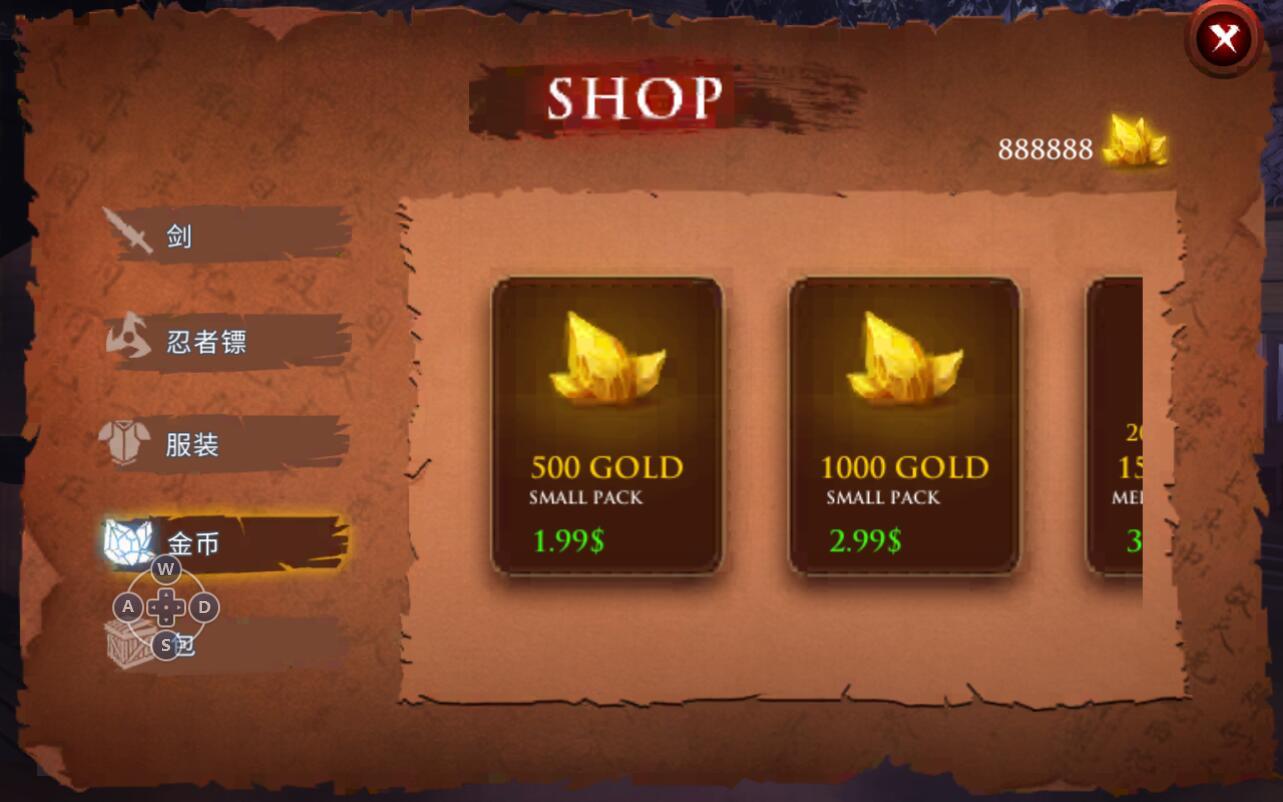 忍者武士隆(大量金币),进入游戏后玩家就可以获得大量金币,可以使用金币在商店购买物品,作为一款很热血的战斗游戏,在这款游戏中玩家和不同的敌人战斗,慢慢的成长,然后去挑战最终BOSS。