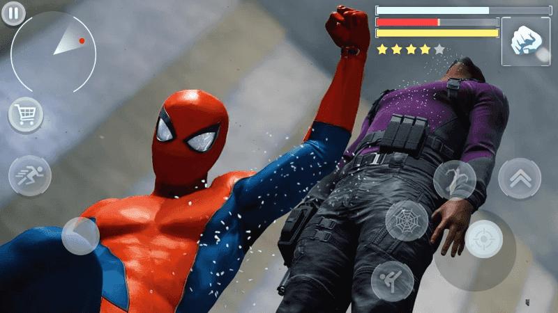 3、在游戏中超级英雄的城市战斗绳索英雄和惊人的蜘蛛侠绳索英雄街头战斗乐趣。