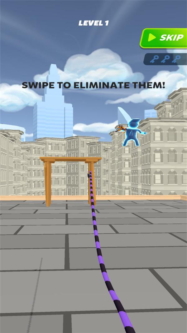 游戏的玩法很简单,当玩家的准心瞄准敌人时,滑动屏幕来射击出去;