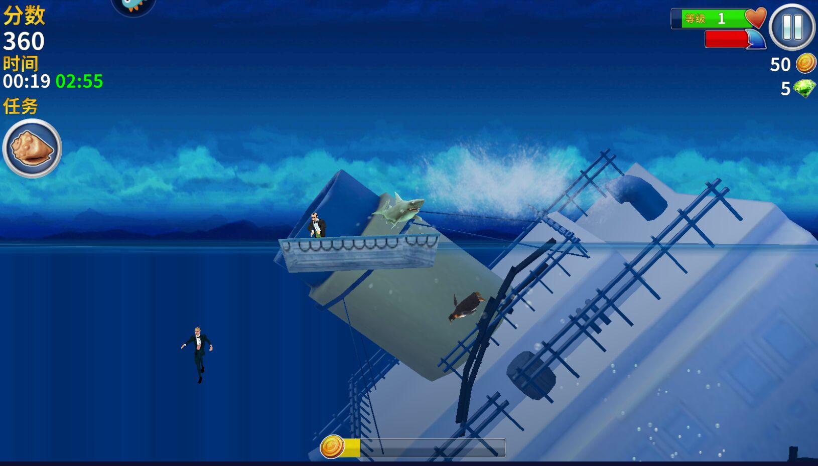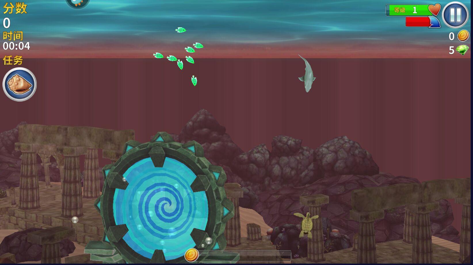 玩家长按屏幕可以加快鲨鱼的速度,让鲨鱼可以游的更快;