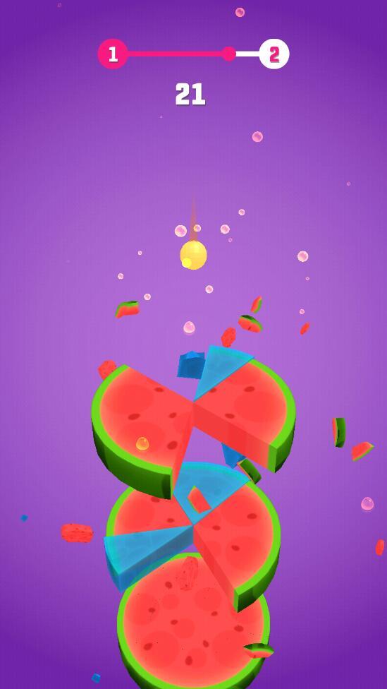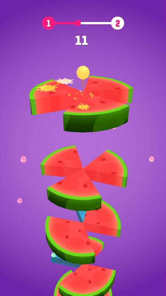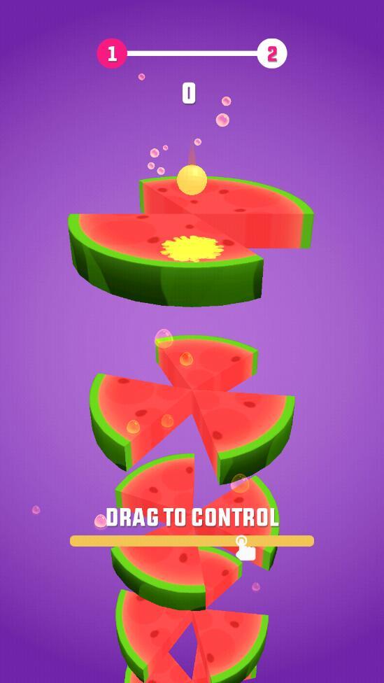 螺旋大西瓜,相信这种类型的游戏有很多玩家都玩过了,整个的内容也是非常的解压,玩家控制着小球不断的冲刺,看着柱子上的所有叶片全部被摧毁看着就非常的舒服,当然玩家也会遇到障碍物,这个时候灵活的转动屏幕就可以了。