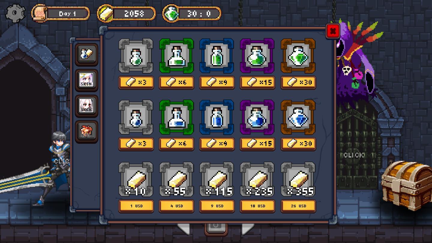 复古的像素卡通画风设计,令人十分的喜爱。