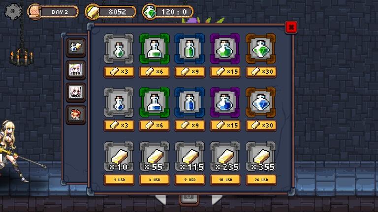 地下城与公主破解版是修改了游戏的金币以及技能的属性,玩家进入游戏就能够看到有着大量的金币能够直接使用,并可以无限升级技能,游戏的破解内容做得还是相当的充分的,玩家将能够在游戏中和公主们开始一段像素的冒险,在一次次的战斗之中体验地牢探险的乐趣。