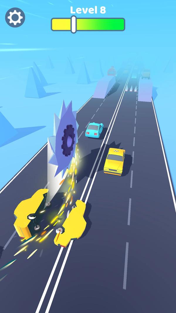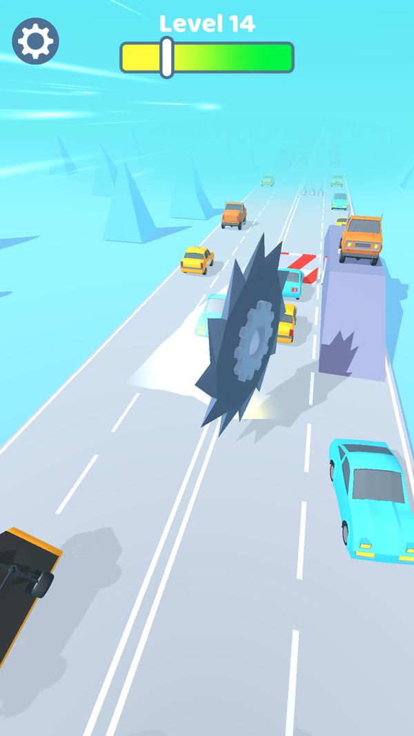 锯齿冲刺是一款趣味玩法的休闲小游戏,游戏的画面很是清爽简约,体验也很不错。游戏过程中,玩家需要控制锯齿一路前进并切割沿路上的车辆,只有切割汽车的时候,齿轮会慢慢变大,否则齿轮就会变得越来越小,一旦齿轮消失,游戏就会结束,因此游戏的关键在于保持齿轮的切割状态。游戏过程解压有趣,赶紧下载游戏来试试吧。