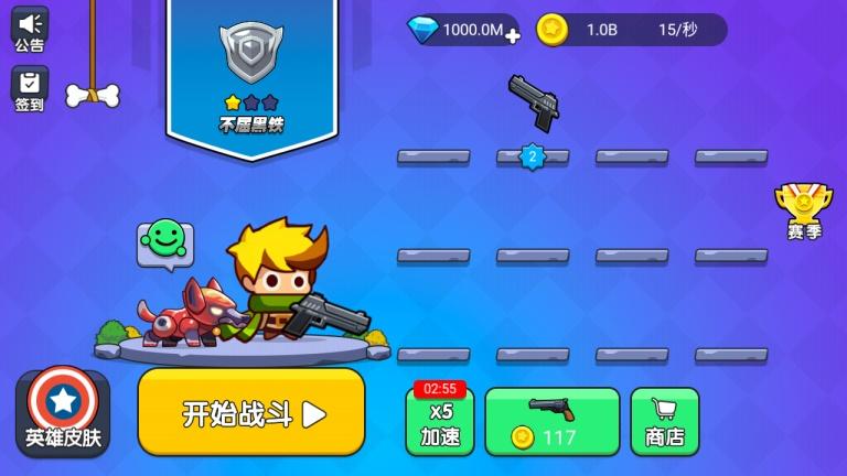 我就要吃鸡破解版是修改了游戏的广告以及金币钻石的内容,玩家可以不看广告直接获得奖励并且进入游戏就能够看到是有大量的钻石金币能直接使用的,这是一款非常简单好玩的放置加上吃鸡玩法的游戏,你能够通过放置来获得更多的武器,并在战斗中体验快速吃鸡的乐趣。