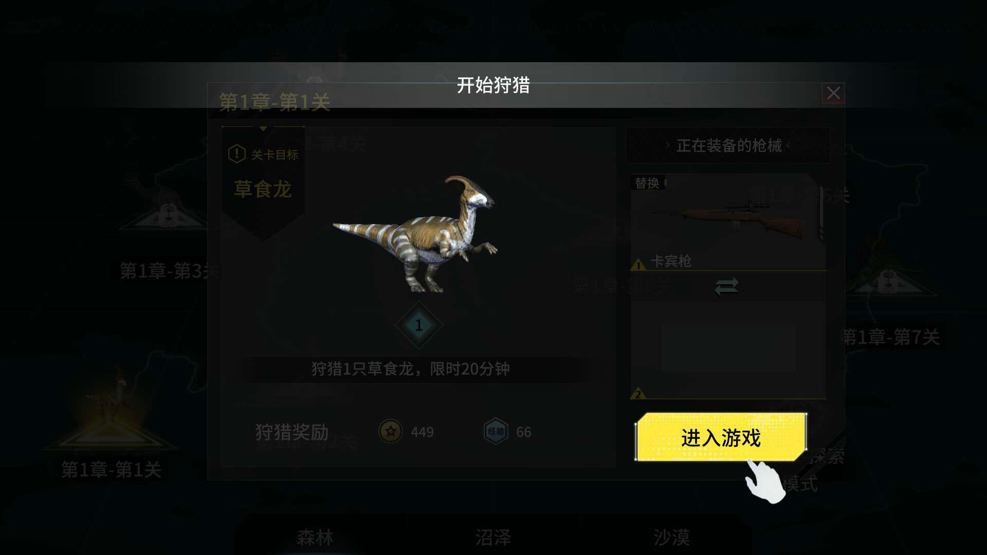 3、玩家可以狩猎不同类型的恐龙,每种恐龙都有不一样的属性哦,可以获得核心奖励哦;