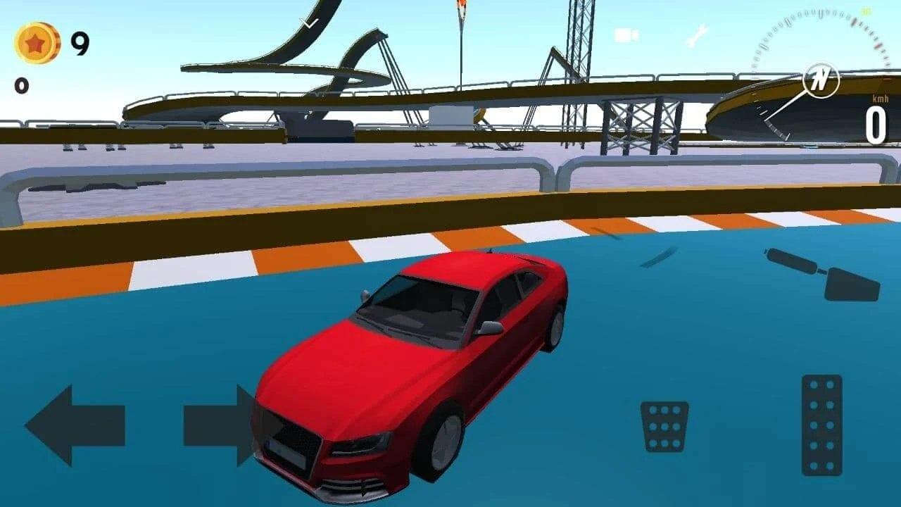 2、玩家需要操控车辆不停的行驶,一旦从高空中坠落就会导致挑战失败;