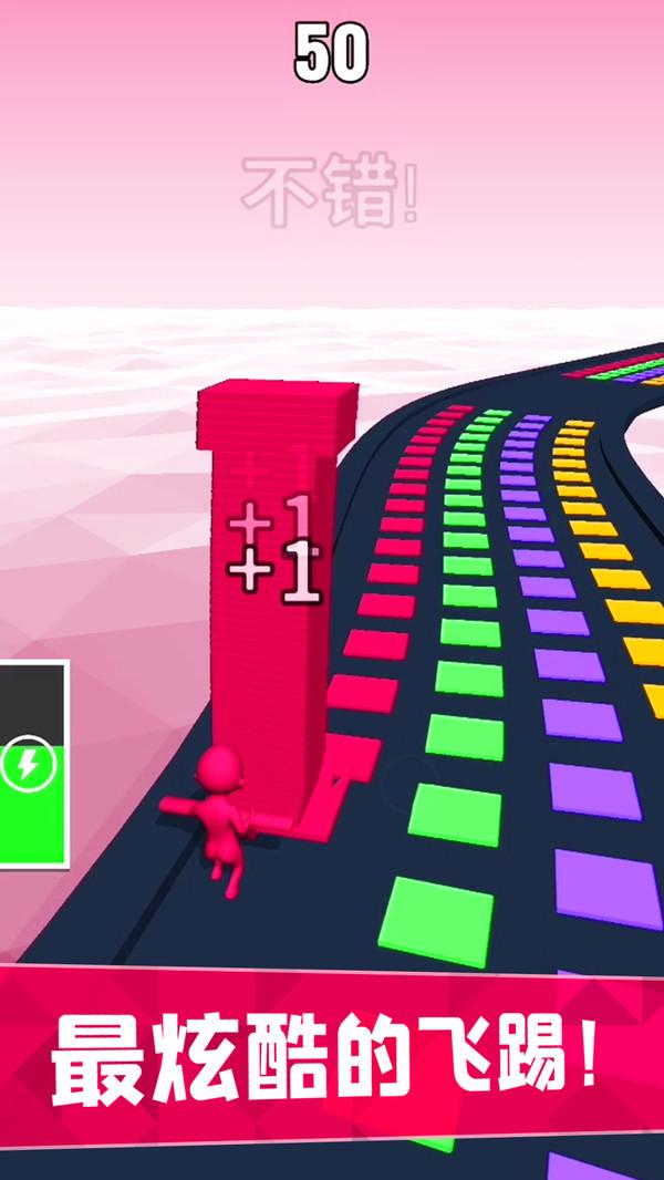 在躲避障碍的同时还要尽可能的收集沿路上的砖块将它们摞高