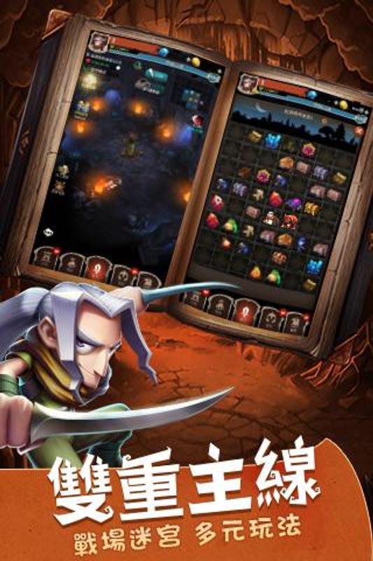 3、创新的地上地下双线冒险:地上是传统放置游戏过关的PVE玩法,地下是迷宫探险 资源掠夺的PVP玩法。