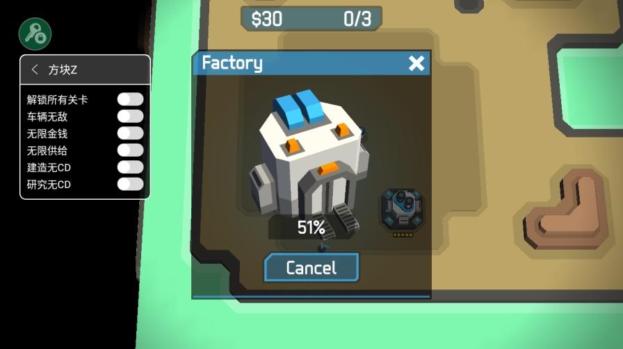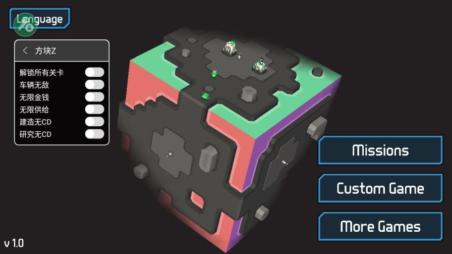 方块z破解版是内置了一个作弊菜单的,这个菜单的功能还是非常的多样的,包含了解锁关卡,车辆无敌,无限金钱,无限供给,研究建造无CD等,每一项破解的内容都是能够给玩家带来相当实际的好处的,游戏本身是一款非常好玩的策略塔防类游戏,丰富的建造内容以及多样化的趣味策略选择让玩家欲罢不能。
