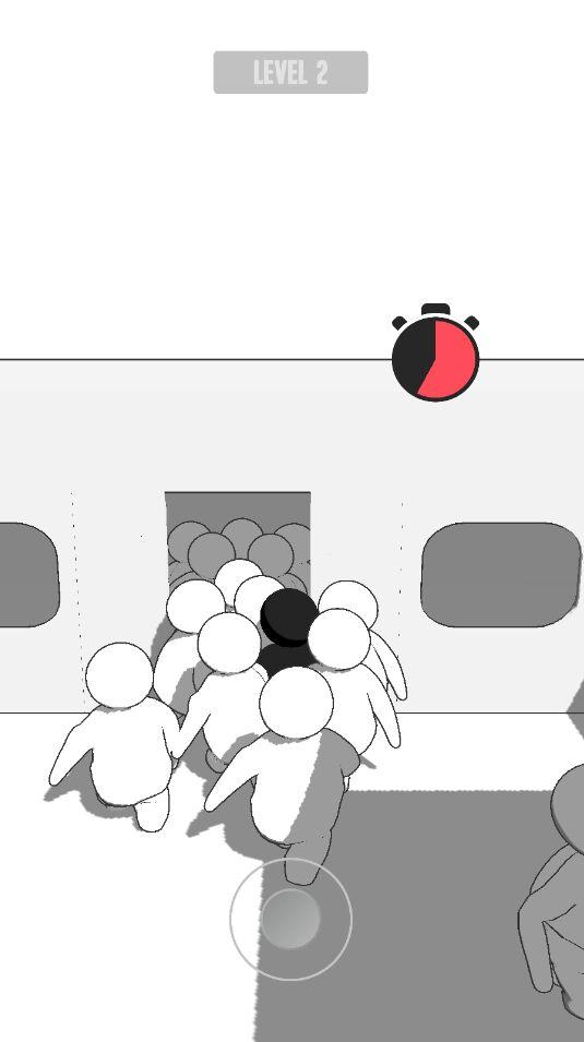通勤繁忙,这款游戏的内容就他名字一般拥挤,进入游戏后玩家会发现整个界面都是黑白了,除了你所有的人也都是白色的线条,而你则是黑色的,你要和这些人一起拥挤着奔向地铁,这一幕非常常见的场景也是让玩家心里一跳。