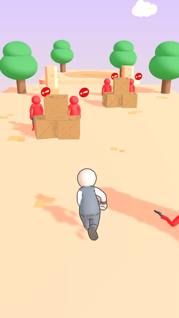 灵活划线,规划子弹射击路线,巧妙避开人质,直接击中敌人,成功杀死敌人,营救人质。