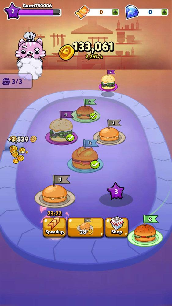 1、有些汉堡看起来还好蛮好吃的!!而且游戏比较休闲,基本的放置类元素都有