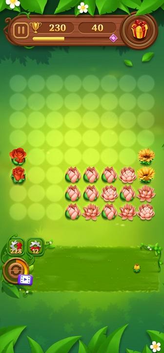 移动花朵,将它们种植到图板中,放置操作非常简单,不过玩家需要注意形状,契合的位置才能填充;