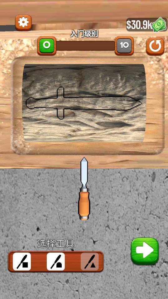 游戏中玩家可以通过点击屏幕将木头削出不同的形状,并按照每一关的需求来进行加工快速的操作;