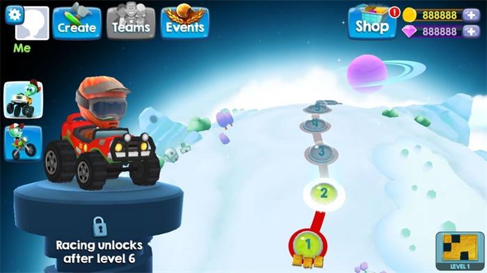 4.3D卡通画风的横版赛车,进行联机对战,游戏非常有趣