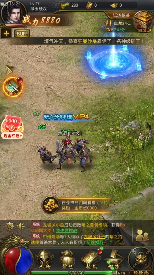 不断进行战斗,感受非常畅快且肆意的战斗体验以外,达到一定的战斗,就可以获得红包奖励,点击即可进行红包的领取,支持进行提现操作。