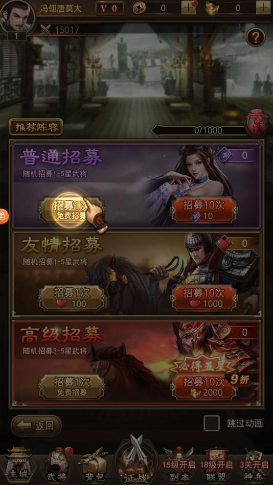 将领不够就马上开始招贤纳士,只要出价够高总有不怕死的猛人可以前来效力;