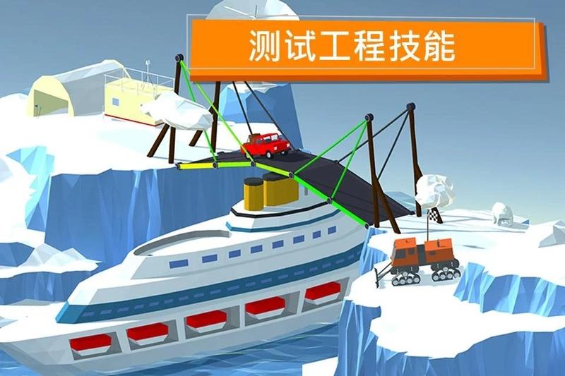 1、在这游戏中玩家需要运用这里面的材料,搭建出一座坚固的桥梁出来完成挑战;
