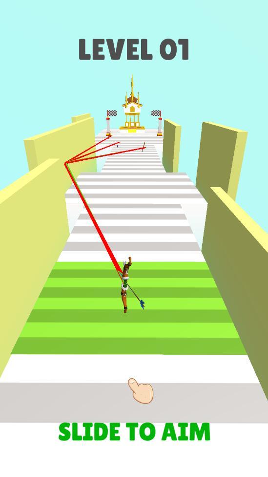 选择一个级别以进入射箭状态,点击屏幕并滑动弓箭以控制射击方向;