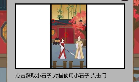 首先玩家们在左上方能够从瓦片上得到石头,之后用石头砸下猫猫。
