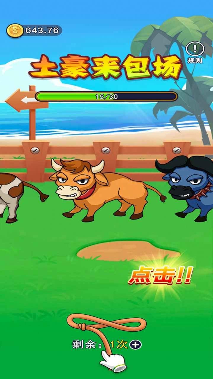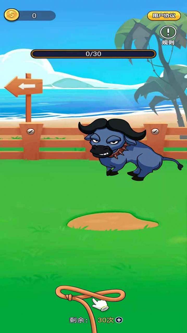游戏的玩法简单粗暴,点击屏幕就能实现使用绳索套牛。