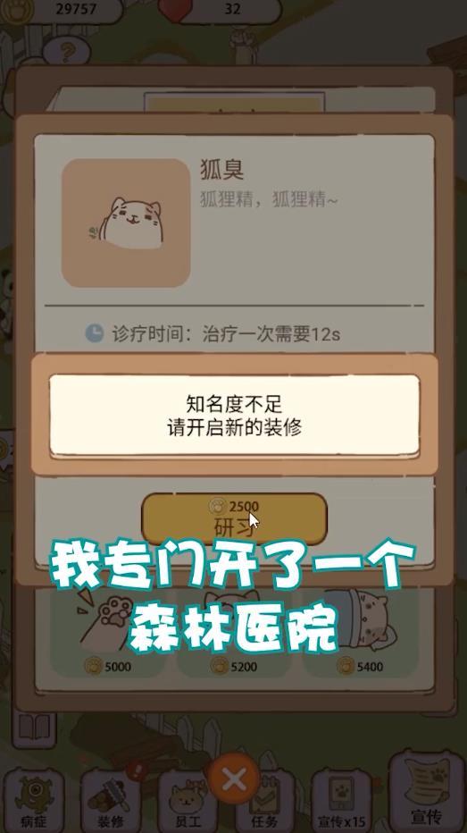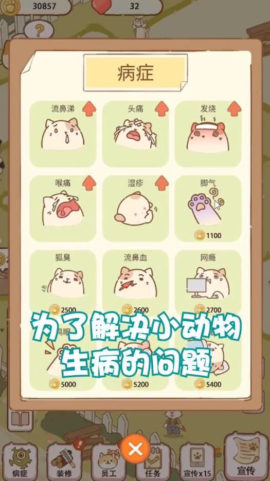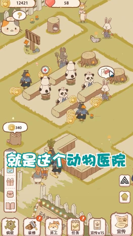 非常卡通的游戏画面,非常治愈的游戏画风,轻松就可以进行宠物医院的经验,支持进行放置操作,玩法是非常轻松的。