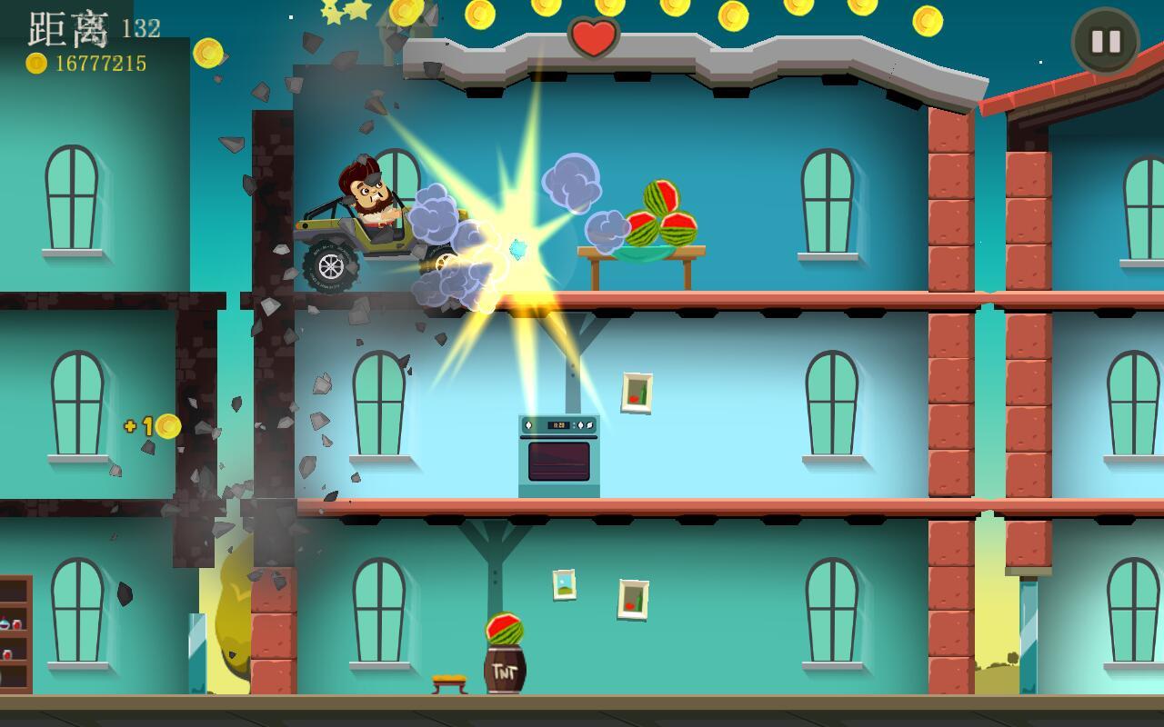 对,你把外星人搞疯了,记住控制好你的车,爆破前进,通过城市到达外星人基地;