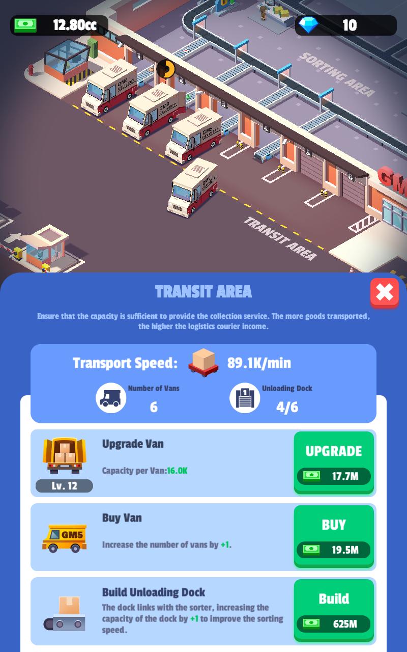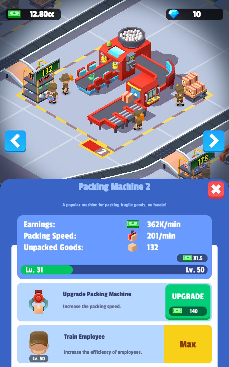 玩家需要根据游戏的流水线,不断的进行升级,从运输车辆,流水线,分拣工厂,员工等,都给玩家不同的养成玩法。