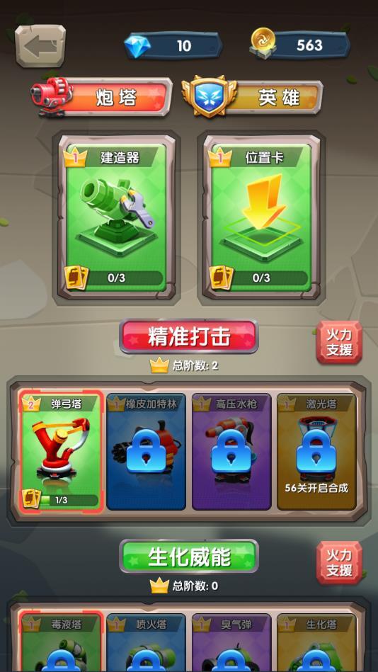 不断进行闯关,还可以解锁更多的系统,让你可以有机会进行炮塔、英雄的获取,进行更加强大的炮塔的制作,进行非常畅快的塔防玩法。
