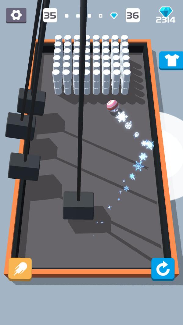 简单有趣的游戏玩法,找准角度,蓄力发射,感受保龄球将各种图案打散的快感