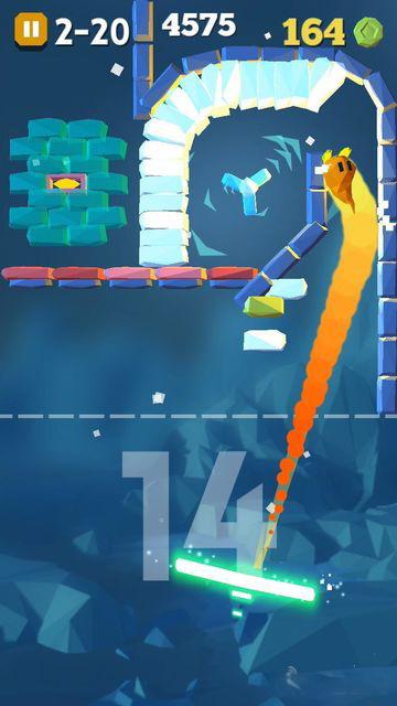 1、玩家要不断的掌控弹珠去消除砖块;