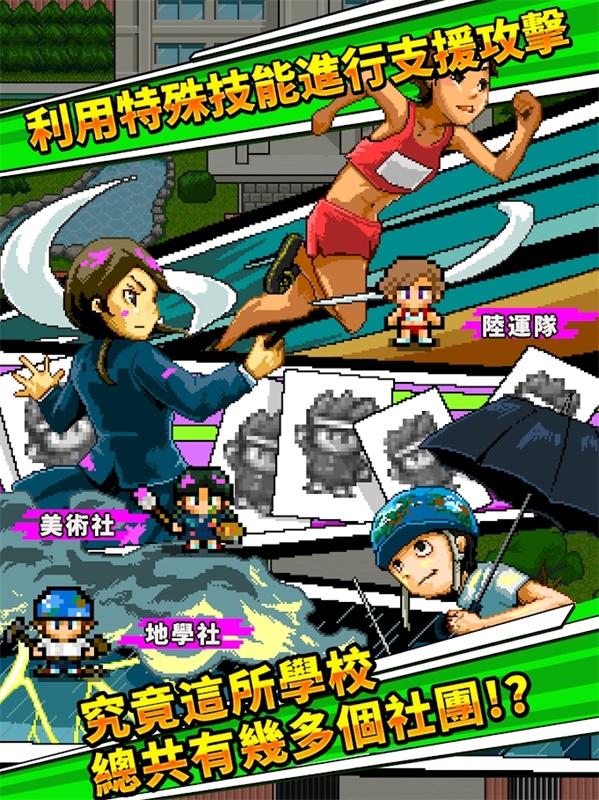1、更多特殊技能任你体验,管弦乐队打气,排球社团拦网,将魔王围住,棒球足球篮球社团开始攻击!
