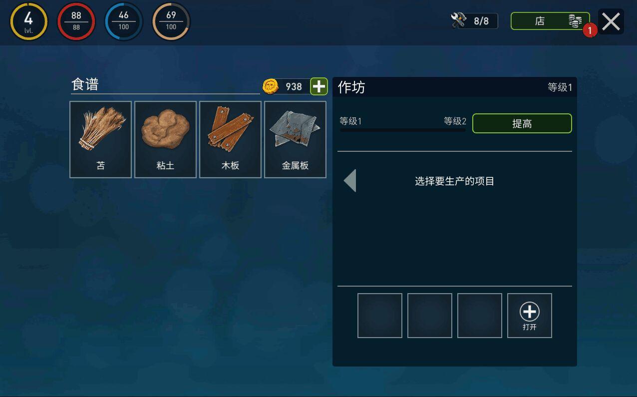 一开始主要是注意不要被鲨鱼咬竹筏和赶快囤水(要淡化)和食物(鱼要煮的,土豆不用),还有就是把竹筏面积变大;