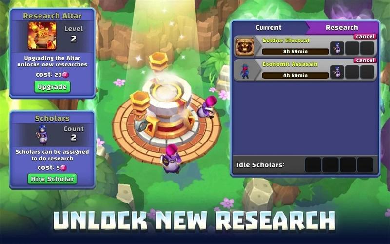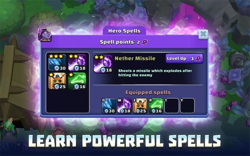 升级英雄以升级统计数据和法术。解锁新的召唤物并对其进行升级,以提高其威力并获得新的能力。研究升级可帮助您战斗。装备武器和其他装备,使自己进一步成为王国的强大防御者。
