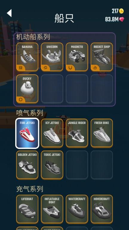 完成许多具有挑战性的任务,以解锁新的喷气式滑雪板和船只。