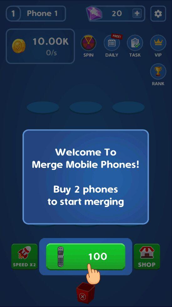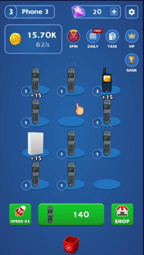 将相同的两个手机进行合成,就会升级成一个更高等级的手机;