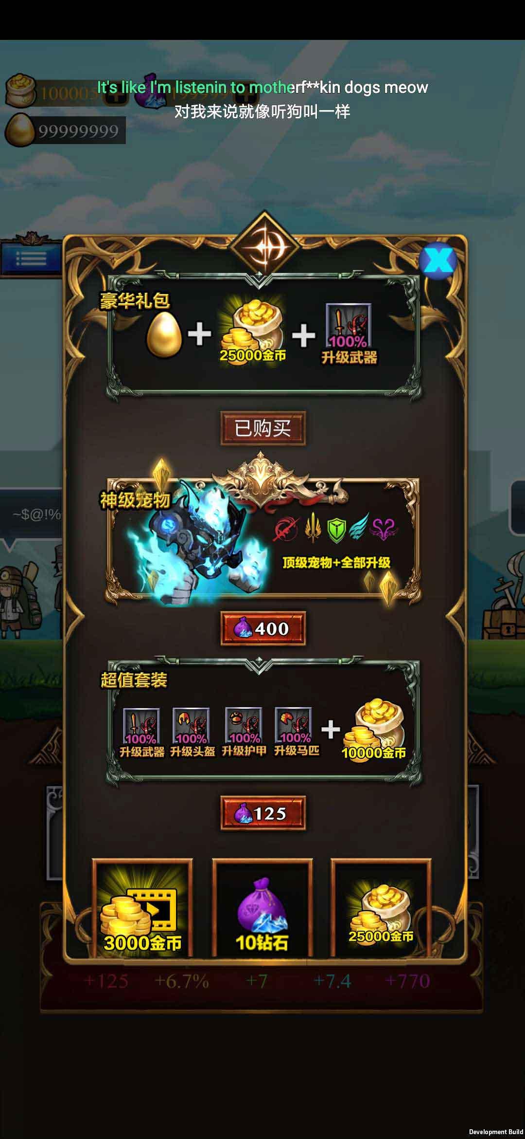 2、可爱的他可是身怀绝技的呦,神级宠物跟随战斗,陪你的勇士大杀四方;