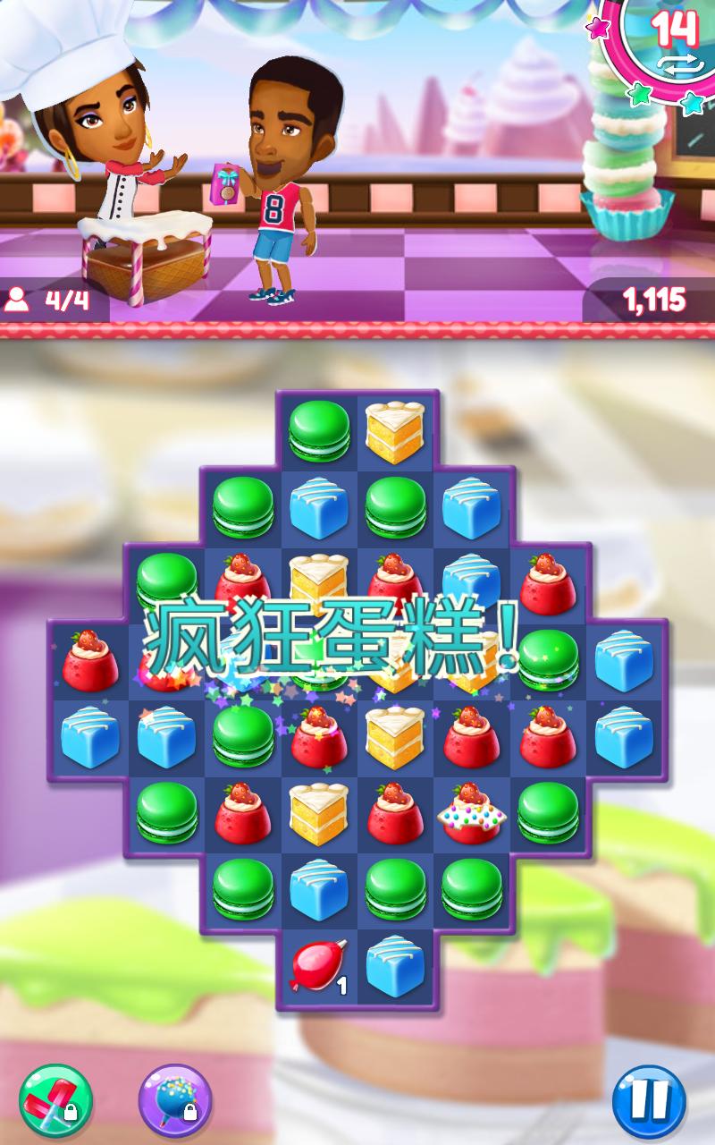 3、全新游戏方式:消除2x2个糖霜管,为顾客清出一条道路,找出藏在甜点下方的好友!