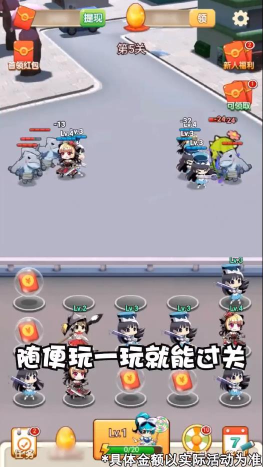 本质上这是一个合成升级,和放置对战的游戏,合成高阶富婆进行对战,趣味无穷红包超大。