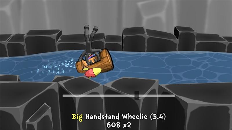 游戏的宗旨是比谁飞的更远些,你要掌握好时机让购物车英雄在恰当的时候加速、起跳,腾空之后要保持它的平衡,好让它能平稳、安全着陆。
