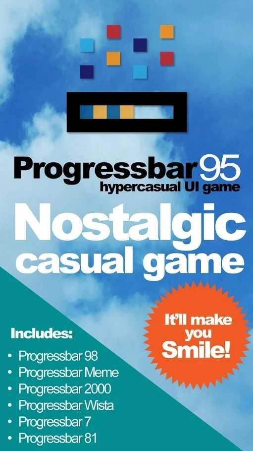 简单进度条又叫做Progressbar95或者win95进度条或者95进度条,这是一款非常怀旧的游戏,在这个版本中玩家是能够免费体验到完整版的手机端的游戏体验,不需要花费钱在电脑端去购买游玩,游戏的内容非常的丰富,玩家的主要行为就是拖动进度条,你能够通过这个行为来进行超级丰富的解谜内容,非常有趣。