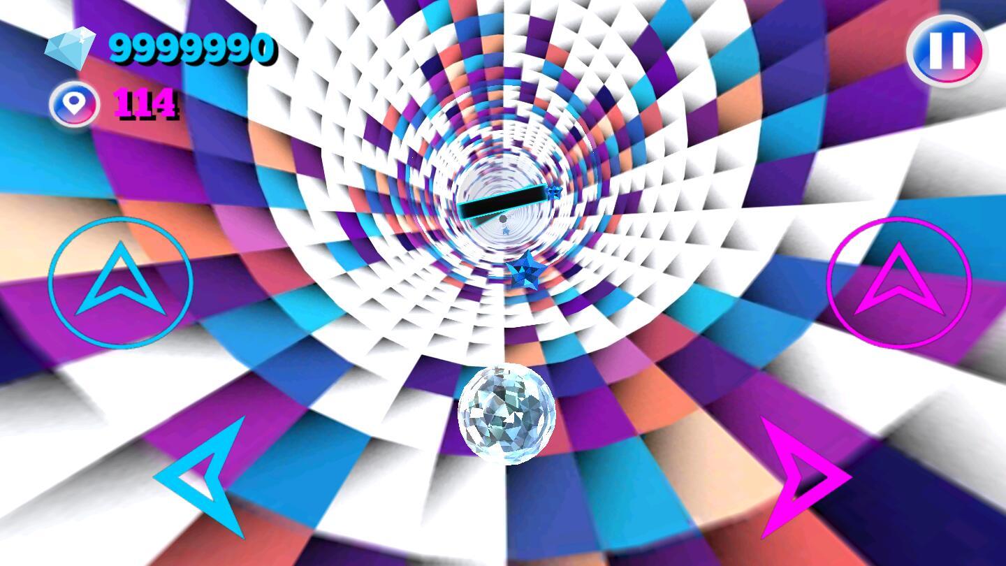 冲下五彩缤纷的隧道,并用熟练的手指按屏幕的每一侧向左或向右旋转,以避免障碍物并收集宝石;