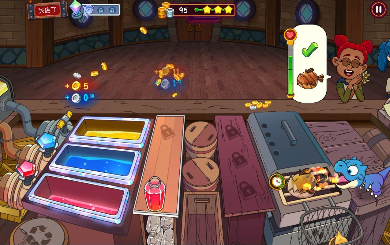 梦幻药剂2破解版无限宝石,玩家可以无限使用金币和宝石购买商店里面的物品,游戏中玩家可以雇佣店员,不同的店员可以做不同的事情,比如在餐厅工作的那条龙,就是其中一位英雄的,玩家可以让那为英雄来控制那条龙,那样就不会出现食物不能吃的情况了。