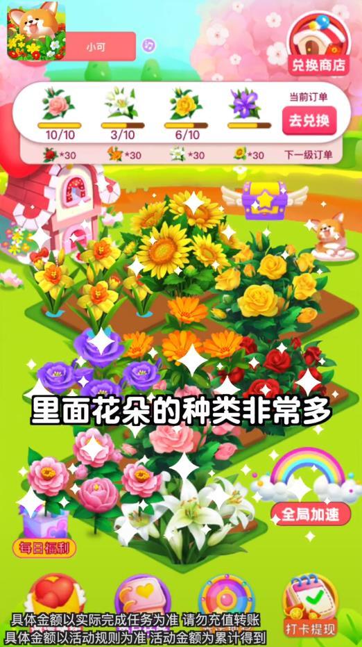 旺旺花园中将拥有属于自己的花园,进行多样花朵的种类的解锁,种植更多类型的花朵,让你的花园更加多彩,操作方式是非常简单的,轻松就可以进行花朵的种植以及收获,还可以进行红包的赚取,玩法是非常精彩有趣的。
